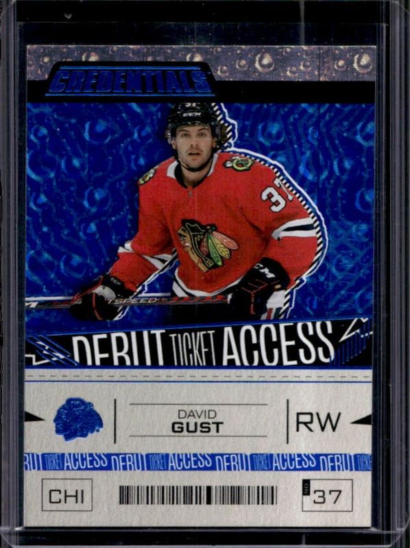 The David Gust 2023 Upper Deck Credentials #115 Blue /149 Rookie card is 1 of 29 David Gust's card variations in the 2023 Upper Deck Credentials set being tracked by Sports Card Investor, including Base /999, Debut Ticket Access Horizontal Variation Yellow, Yellow, Debut Ticket Access Horizontal Variation /799, and Red /349.