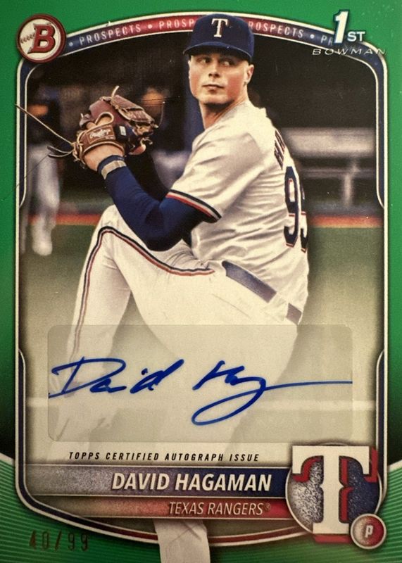 2025 Bowman David Hagaman Auto Green Border 1st #99/99 Rangers