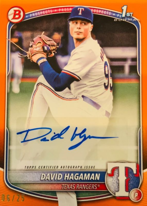 David Hagaman 2025 Bowman #BPA-DH Prospect Auto - Orange Border /25 (1st) RAW Price Guide