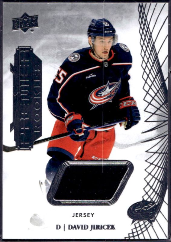 The David Jiricek 2022 Upper Deck Premier #135 Jersey Rookie card is 1 of 36 David Jiricek's card variations in the 2022 Upper Deck Premier set being tracked by Sports Card Investor, including Base /399, Autographs, Rookies Bronze /199, Gold /65, and Premium Memorabilia /49.
