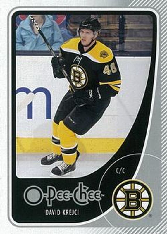The David Krejci 2010 O-Pee-Chee #127 Base card is 1 of 6 David Krejci's card variations in the 2010 O-Pee-Chee set being tracked by Sports Card Investor, including Retro, Retro Blank Back, Retro Rainbow, Retro Black Rainbow /100, and Winter Classic.