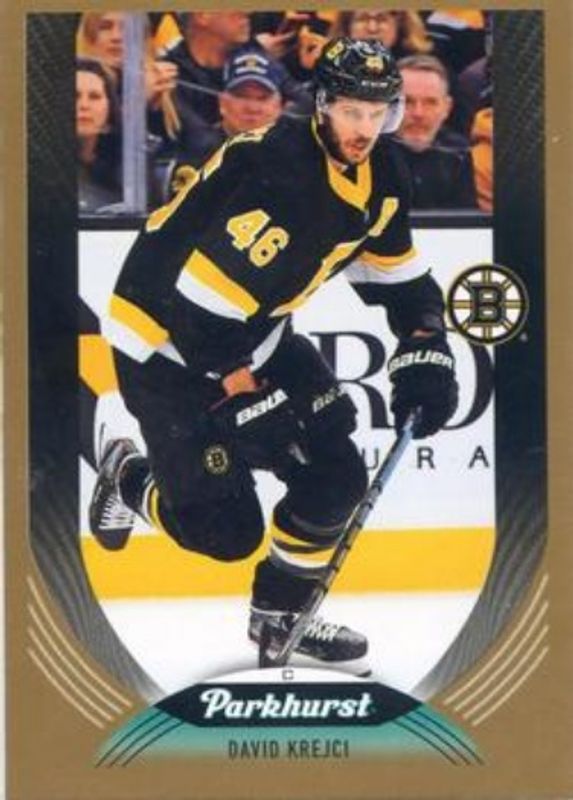 The David Krejci 2020 Upper Deck Parkhurst #20 Gold card is 1 of 5 David Krejci's card variations in the 2020 Upper Deck Parkhurst set being tracked by Sports Card Investor, including Base, Silver, Bronze, and Gold Foil.