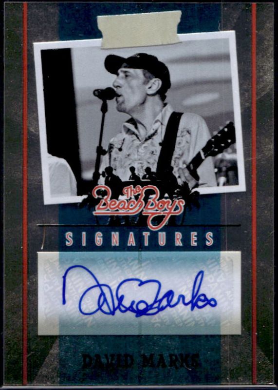 The David Marks 2013 Panini The Beach Boys #20 Signatures Autographs /65 card is 1 of 77 David Marks' card variations in the 2013 Panini The Beach Boys set being tracked by Sports Card Investor, including #104 Base, #113 Base, #118 Base, #4 Base, and #94 Base.