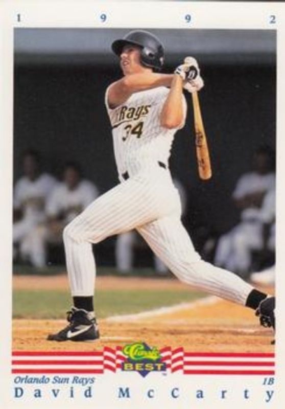 The David McCarty 1992 Classic Best #350 Base Rookie card is 1 of 4 David McCarty's card variations in the 1992 Classic Best set being tracked by Sports Card Investor, including Bonus - Blue, Bonus - Red, and Autographs /1100.