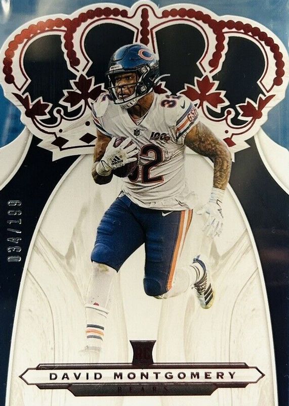 The David Montgomery 2019 Chronicles #CR-22 Crown Royale - Red /199 Rookie card in Raw condition has not changed in price in the last 30 days and was last sold for $3.31 .