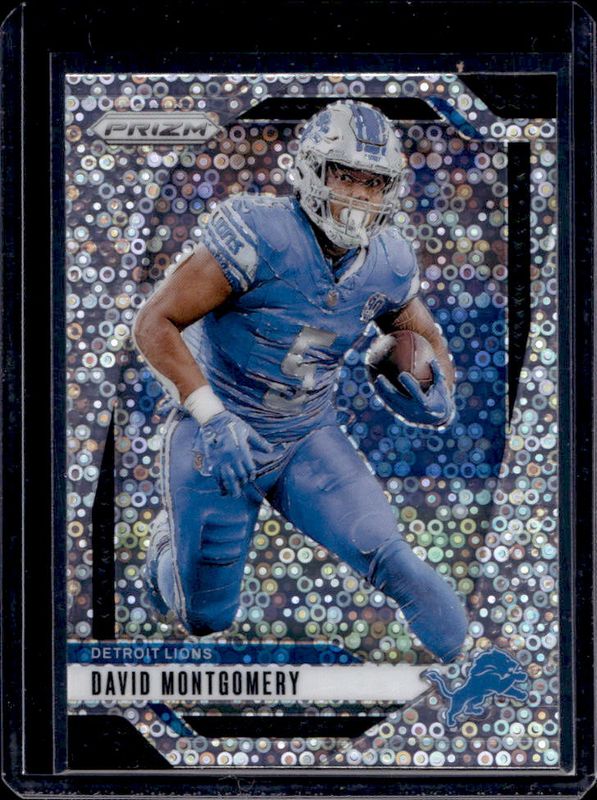 The David Montgomery 2024 Prizm #94 No Huddle card is 1 of 83 David Montgomery's card variations in the 2024 Prizm set being tracked by Sports Card Investor, including Base, Choice Blue Yellow Green, Choice Silver, Disco, and Green.
