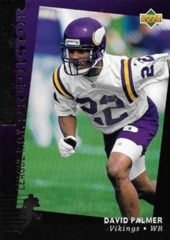 The David Palmer 1994 Upper Deck #H14 Predictors Exchange: Award Winners Rookie card is 1 of 5 David Palmer's card variations in the 1994 Upper Deck set being tracked by Sports Card Investor, including Base, Electric, Electric Gold, and Predictors: Award Winners.
