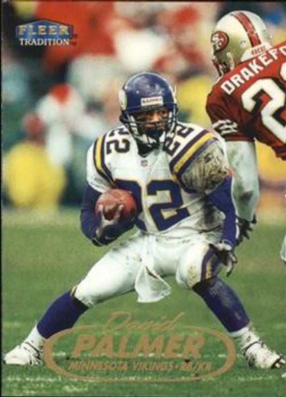 The David Palmer 1998 Fleer Tradition #123 Base card is 1 of 2 David Palmer's card variations in the 1998 Fleer Tradition set being tracked by Sports Card Investor, including Heritage /125.