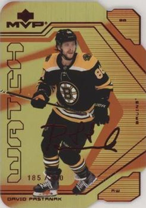 The David Pastrnak 2021 Upper Deck MVP #10 Colors & Contours /250 card is 1 of 35 David Pastrnak's card variations in the 2021 Upper Deck MVP set being tracked by Sports Card Investor, including Base, Blue, Gold Script, Ice Battles, and Silver Script.