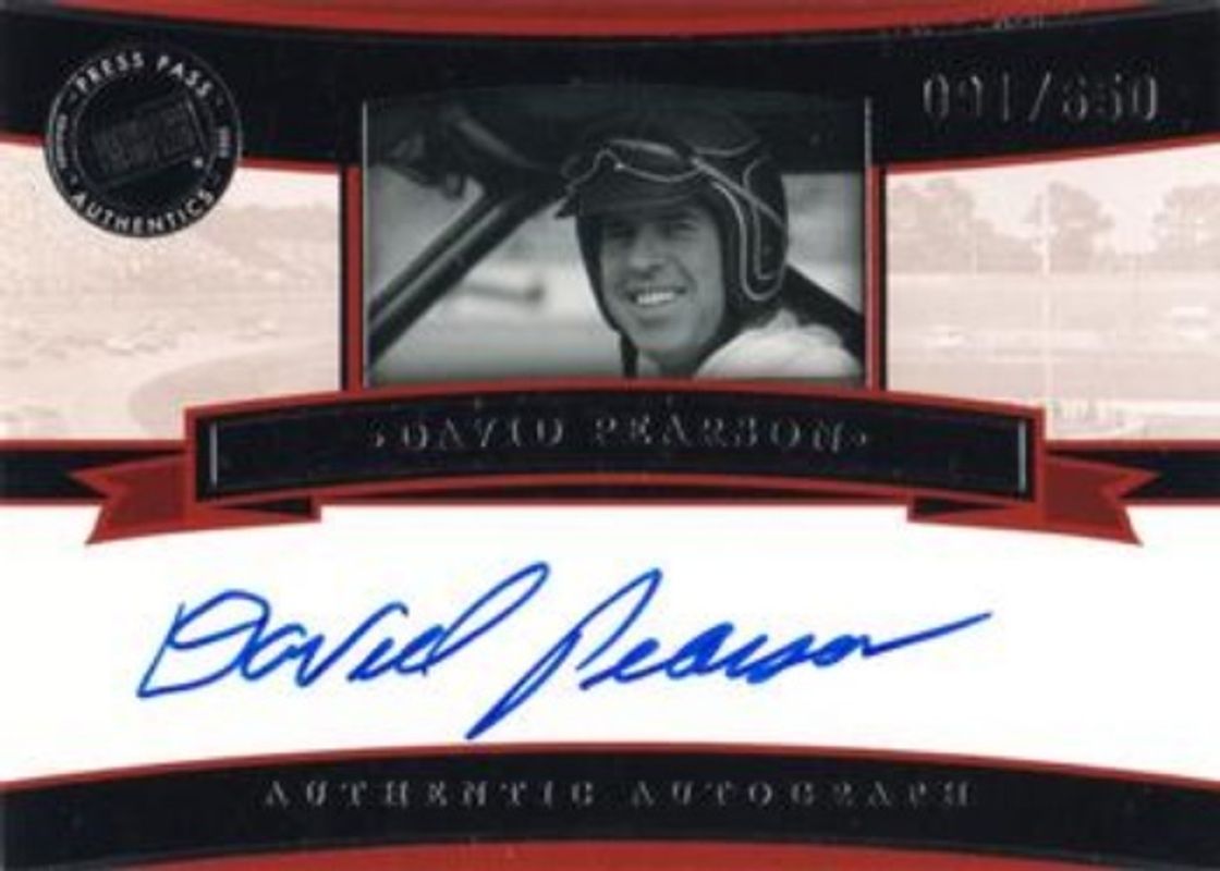 The David Pearson 2005 Press Pass Legends Autographs - Blue /700 card is 1 of 19 David Pearson's card variations in the 2005 Press Pass Legends set being tracked by Sports Card Investor, including Base, Blue /1890, Gold /750, Holofoil /100, and eBay Previews /5.