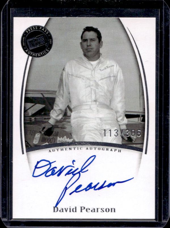 The David Pearson 2007 Press Pass Legends Autographs - Blue /562 card is 1 of 38 David Pearson's card variations in the 2007 Press Pass Legends set being tracked by Sports Card Investor, including #60 Base, #15 Base, #S-60 Solo, #S-15 Solo, and #B-60 Blue /999.