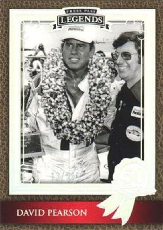 The David Pearson 2010 Press Pass Legends #62 Holofoil /50 card is 1 of 66 David Pearson's card variations in the 2010 Press Pass Legends set being tracked by Sports Card Investor, including #62 Base, #73 Base, #28 Base, #28 Gold /399, and #73 Gold /399.