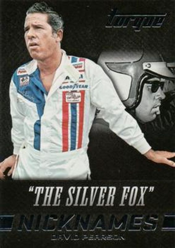 The David Pearson 2016 Torque NASCAR #N5 Nicknames card is 1 of 41 David Pearson's card variations in the 2016 Torque NASCAR set being tracked by Sports Card Investor, including Base, Gold, Blue /125, Red /99, and Artist Proof /50.