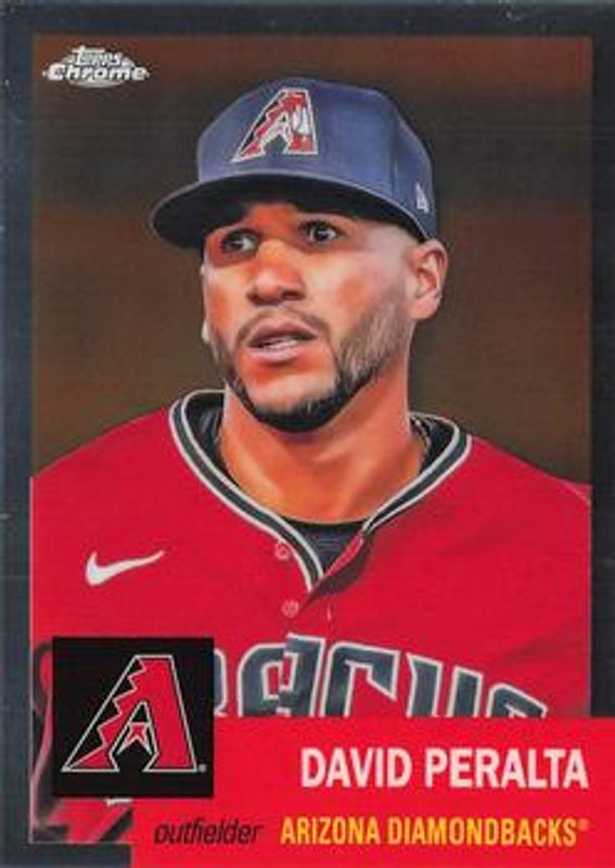 The David Peralta 2022 Topps Chrome Platinum Anniversary #119 Base card is 1 of 34 David Peralta's card variations in the 2022 Topps Chrome Platinum Anniversary set being tracked by Sports Card Investor, including Black & White Mini Diamond Refractor, Blue Prism Refractor, Gold Prism Refractor, Prism Refractor, and Red Prism Refractor.