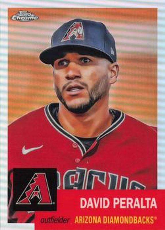 The David Peralta 2022 Topps Chrome Platinum Anniversary #119 Refractor card is 1 of 34 David Peralta's card variations in the 2022 Topps Chrome Platinum Anniversary set being tracked by Sports Card Investor, including Base, Black & White Mini Diamond Refractor, Blue Prism Refractor, Gold Prism Refractor, and Prism Refractor.
