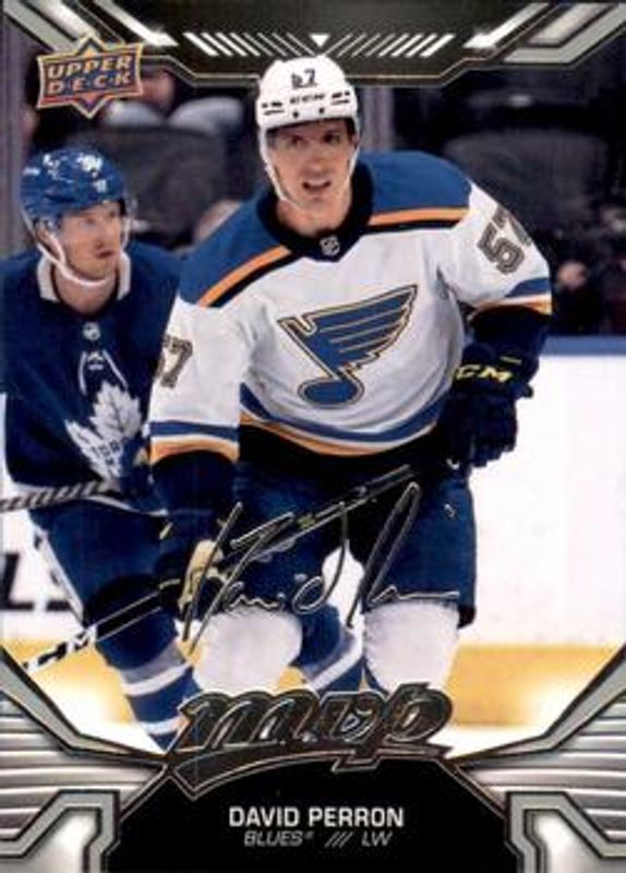 David Perron's Hockey cards are available in at least 144 sets. David Perron's biggest 7-day price movers are 2022 Upper Deck MVP #73 Silver Script, 2022 Upper Deck MVP #73 Printing Plates Yellow /1, and 2022 Upper Deck MVP #73 Super Script Black /5.