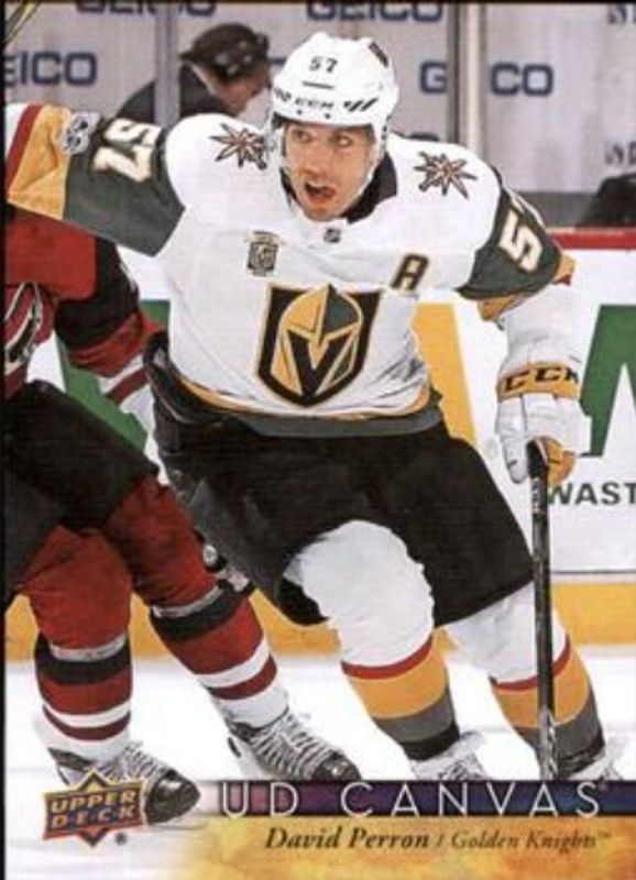 The David Perron 2017 Upper Deck #C202 UD Canvas card is 1 of 12 David Perron's card variations in the 2017 Upper Deck set being tracked by Sports Card Investor, including Base, Clear Cut, Gold Rainbow Foil, Silver Foil, and UD Exclusives /100.