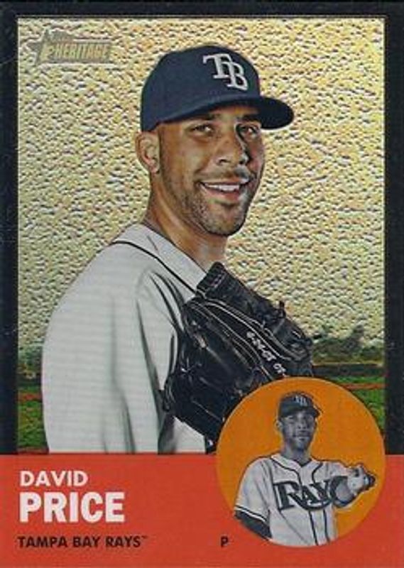The David Price 2012 Topps Heritage #HP61 Chrome Black Refractor /63 card is 1 of 9 David Price's card variations in the 2012 Topps Heritage set being tracked by Sports Card Investor, including #277b Base, #277a Base, #HP61 Black, #277 Target Red Border, and #HP61 Chrome /1963.