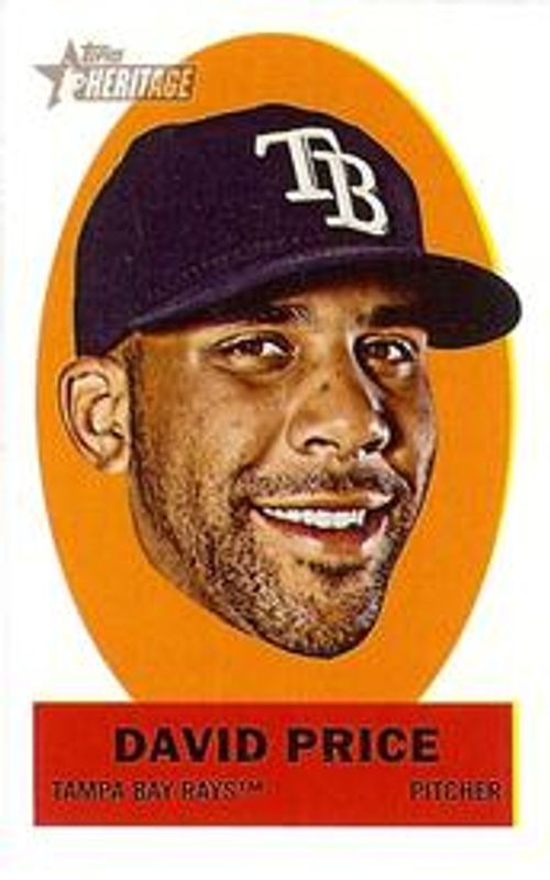 The David Price 2012 Topps Heritage #11 Stick Ons card is 1 of 9 David Price's card variations in the 2012 Topps Heritage set being tracked by Sports Card Investor, including #277b Base, #277a Base, #HP61 Black, #277 Target Red Border, and #HP61 Chrome /1963.