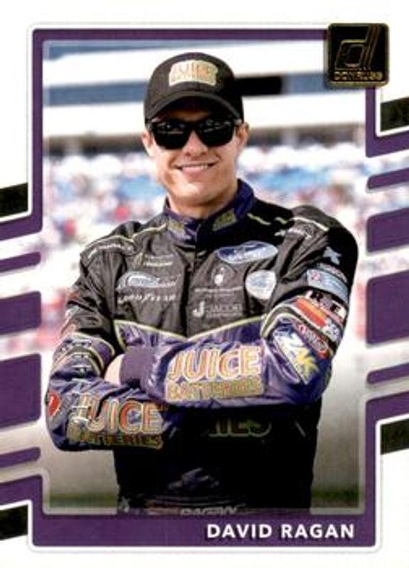 The David Ragan 2018 Donruss NASCAR #63 Gold Foil /499 card is 1 of 28 David Ragan's card variations in the 2018 Donruss NASCAR set being tracked by Sports Card Investor, including #101a Base, #63 Base, #101a Gold Foil /499, #101a Red Foil /299, and #63 Red Foil /299.
