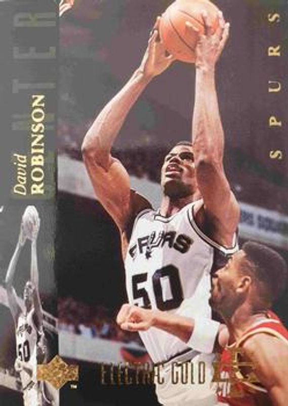 The David Robinson 1993 Upper Deck Special Edition #177 Electric Court Gold card is 1 of 6 David Robinson's card variations in the 1993 Upper Deck Special Edition set being tracked by Sports Card Investor, including Base, Electric Court, Die-Cut All-Stars - Western Conference, USA Basketball Exchange, and Western Conference All Stars.