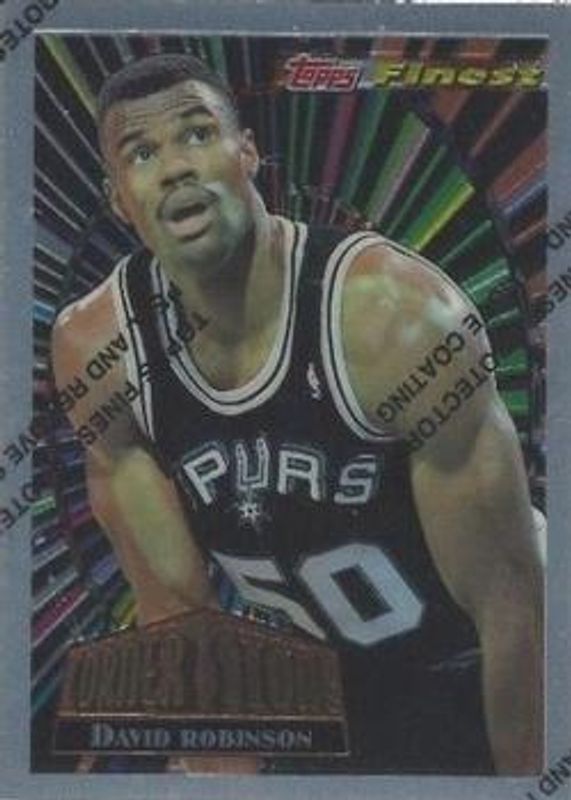 The David Robinson 1994 Topps Finest #CS14 Cornerstones card is 1 of 3 David Robinson's card variations in the 1994 Topps Finest set being tracked by Sports Card Investor, including Iron Men, and Lottery Prize.