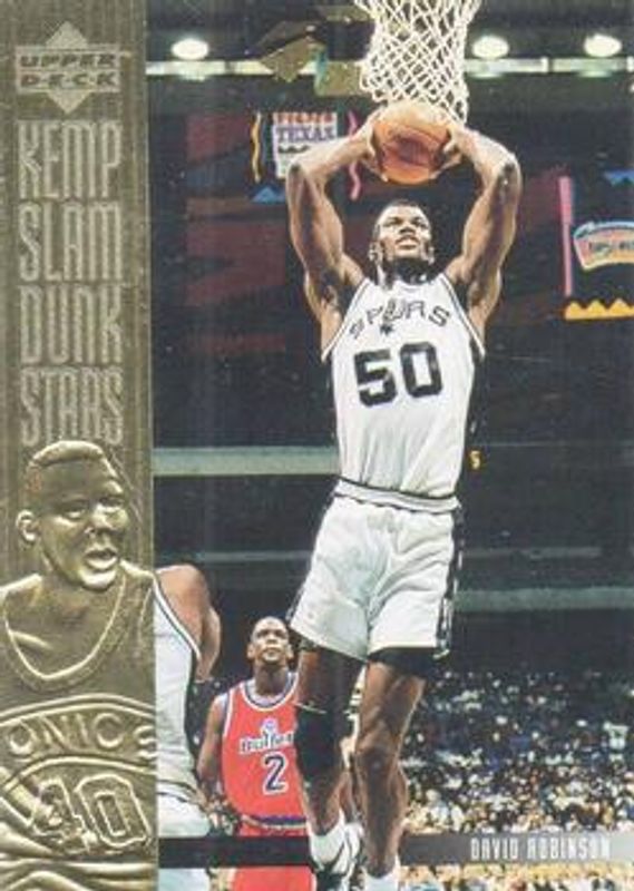 The David Robinson 1994 Upper Deck #S16 Kemp Slam Dunk Stars card is 1 of 15 David Robinson's card variations in the 1994 Upper Deck set being tracked by Sports Card Investor, including #96 Base, #18 Base, #H5 Predictors: Award Winners, #H23 Predictors: Award Winners, and #H18 Predictors: Award Winners.