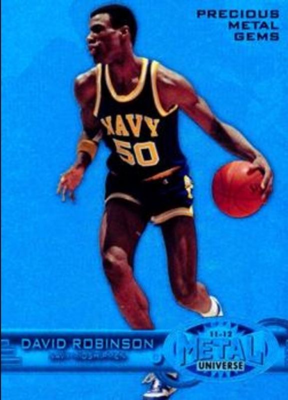 The David Robinson 2011 Fleer Retro #PM-6 Precious Metal Gems Blue /50 card is 1 of 25 David Robinson's card variations in the 2011 Fleer Retro set being tracked by Sports Card Investor, including Base, Autographs, 1961 Autographs, 1961 Blue Red, and 1961 Green Yellow.