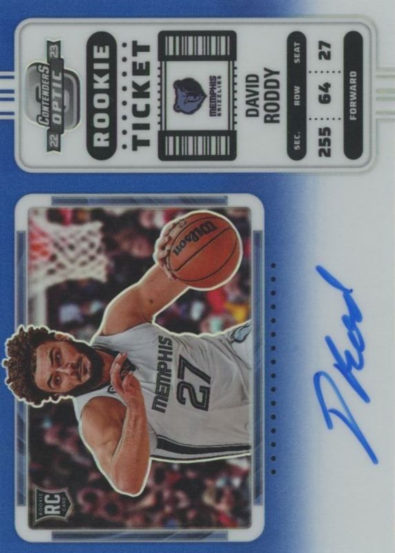 2022-23 Contenders Optic RC Ticket Horizontal Blue Auto David Roddy 37/49 #140