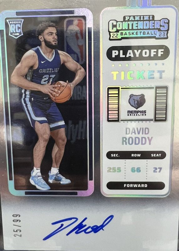 2022-23 Panini Contenders Playoff Ticket 80/99 David Roddy #105 Rookie Auto RC