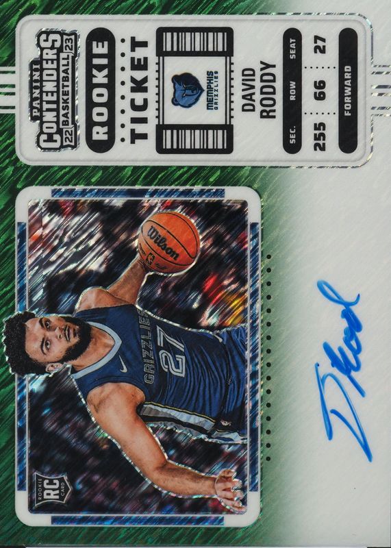 David Roddy 2022 Contenders #105 Rookie Ticket Auto - Premium Green Shimmer RAW Price Guide