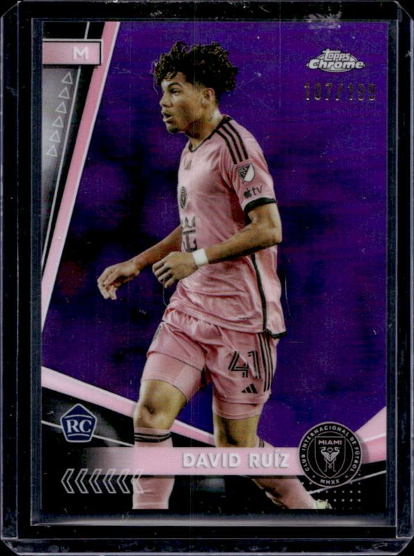 The David Ruiz 2024 Topps Chrome MLS #78 Purple Refractor /199 card is 1 of 63 David Ruiz's card variations in the 2024 Topps Chrome MLS set being tracked by Sports Card Investor, including #133 Base, #78 Base, #78 Aqua Lava Refractor, #133 Aqua Lava Refractor, and #133 Gold Lava Refractor.