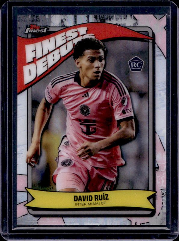 The David Ruiz 2024 Topps Finest MLS #FD-13 Finest Debuts card is 1 of 51 David Ruiz's card variations in the 2024 Topps Finest MLS set being tracked by Sports Card Investor, including #36 Base, #136 Base, #224 Base, #36 Aqua Refractor, and #136 Aqua Refractor.