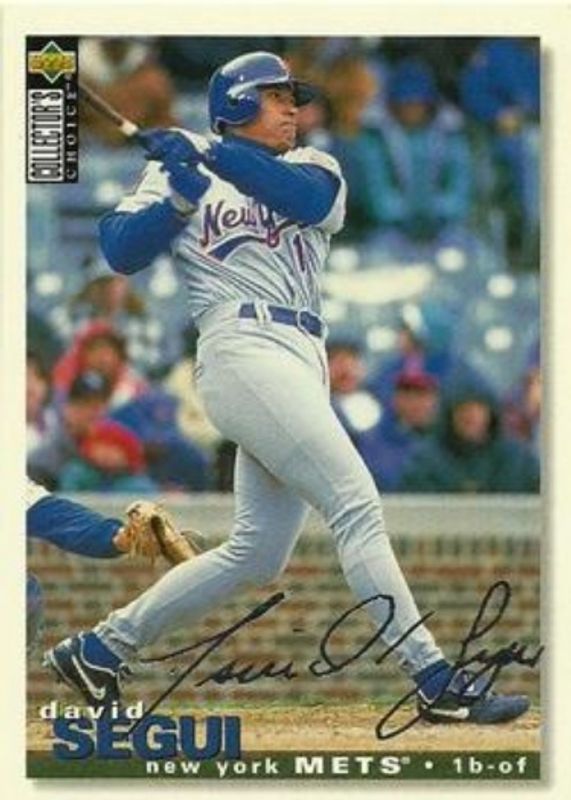 The David Segui 1995 Upper Deck Collector's Choice #313 Silver Signatures card is 1 of 3 David Segui's card variations in the 1995 Upper Deck Collector's Choice set being tracked by Sports Card Investor, including Base, and Gold Signatures.