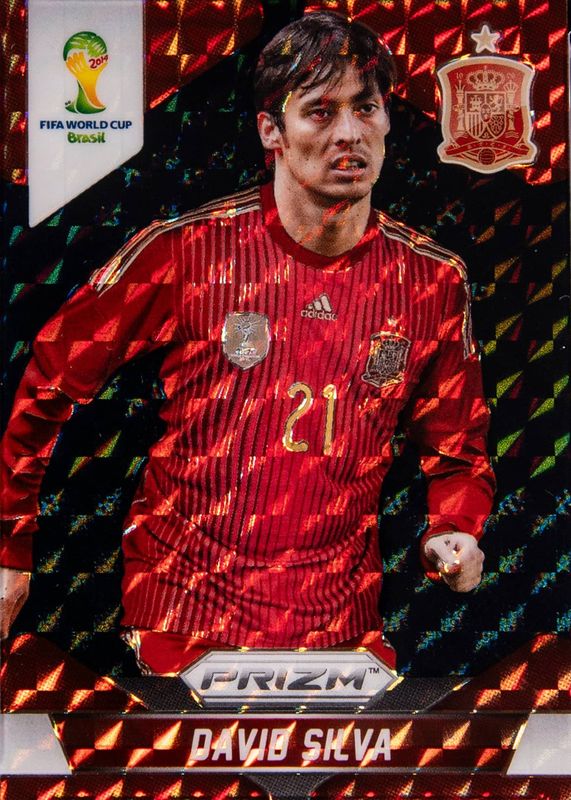 This card is 1 of 12 David Silva's card variations in the 2014 Prizm World Cup set being tracked by Sports Card Investor, including Base, Blue & Red Wave, Red White Blue Power Plaid, Silver, and Yellow & Red Pulsar.