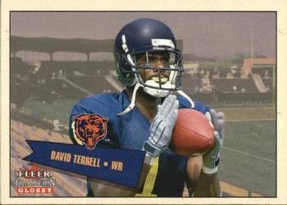 The David Terrell 2001 Fleer Tradition Glossy #404 Base /2001 Rookie card is 1 of 3 David Terrell's card variations in the 2001 Fleer Tradition Glossy set being tracked by Sports Card Investor, including Rookie Stickers /699, and Rookie Minis /350.