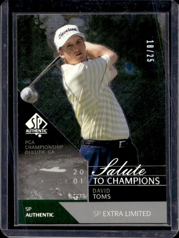 The David Toms 2003 SP Authentic #100 Extra Limited /25 card is 1 of 10 David Toms' card variations in the 2003 SP Authentic set being tracked by Sports Card Investor, including #2SPA Base /2002, #100 Base /2002, #2SPA Limited /100, #46 National Pride - Limited /100, and #2SPA Extra Limited /25.