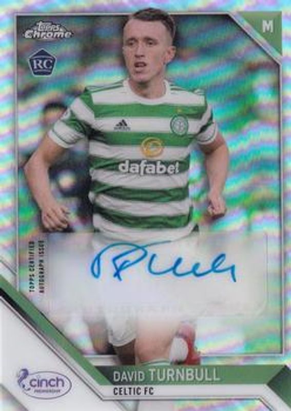 The David Turnbull 2021 Topps Chrome SPFL #CA-DT Autographs card is 1 of 22 David Turnbull's card variations in the 2021 Topps Chrome SPFL set being tracked by Sports Card Investor, including Base, Refractor, Blue Tartan /125, Gold /75, and Green Tartan /50.