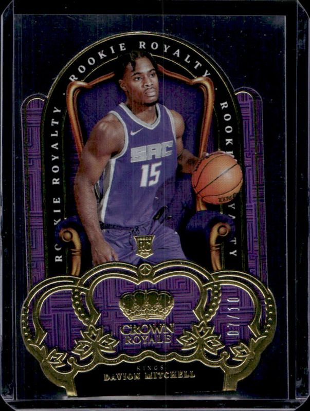 The Davion Mitchell 2021 Crown Royale #38 Rookie Royalty - Asia Gold /10 card is 1 of 48 Davion Mitchell's card variations in the 2021 Crown Royale set being tracked by Sports Card Investor, including #41 Base, #103 Base, #41 Asia Exclusive Red, #41 Crystal, and #41 Blue Crystal /99.