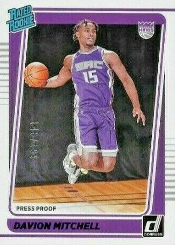 The Davion Mitchell 2021 Donruss #205 Press Proof Purple /199 Rookie card in Raw condition has not changed in price in the last 30 days and was last sold for $8.00 .
