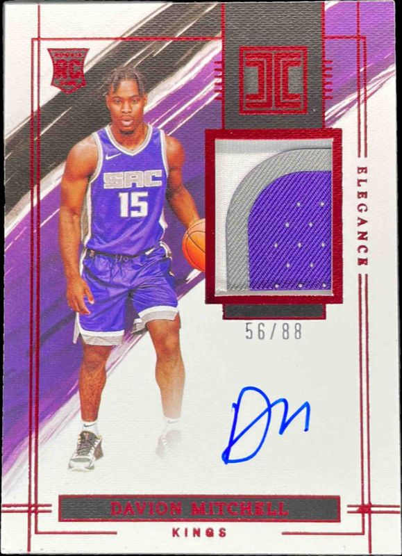 The Davion Mitchell 2021 Impeccable #109 Asia /88 Rookie card is 1 of 49 Davion Mitchell's card variations in the 2021 Impeccable set being tracked by Sports Card Investor, including #87 Base /99, #109 Base /99, #87 Asia /88, #87 Silver /75, and #87 Gold /49.