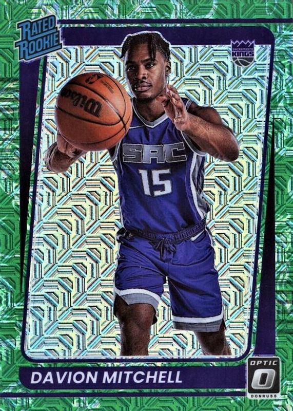 The Davion Mitchell 2021 Optic #155 Choice Dragon /(SSP) Rookie card in Raw condition has not changed in price in the last 30 days and was last sold for $43.00 .