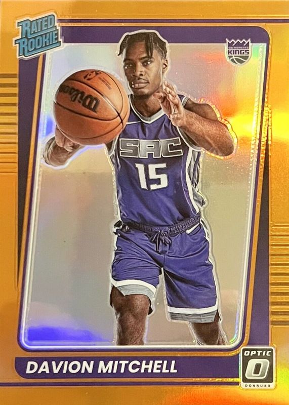 The Davion Mitchell 2021 Optic #155 Orange /199 Rookie card in Raw condition has not changed in price in the last 30 days and was last sold for $2.99 .