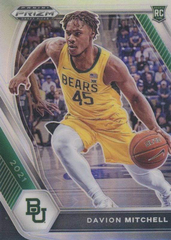 This card is 1 of 3 Davion Mitchell's card variations in the 2021 Prizm Draft Picks set being tracked by Sports Card Investor, including On Campus /(SSP), and Stained Glass /(SSP).