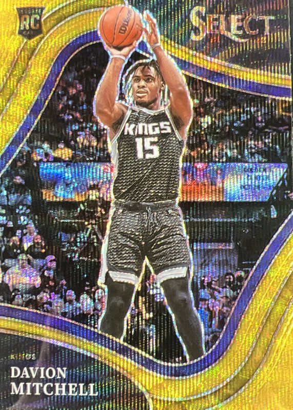 2021-22 Panini Select Courtside Davion Mitchell Gold Wave RC Kings Rookie