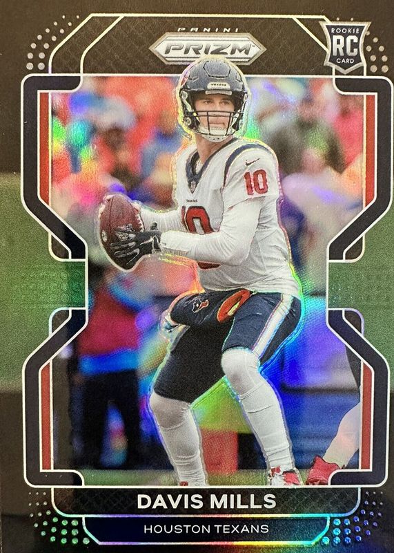 The Davis Mills 2021 Chronicles #PB-15 Prizm Black - Green /49 Rookie card in Raw condition has not changed in price in the last 30 days and was last sold for $59.99 .