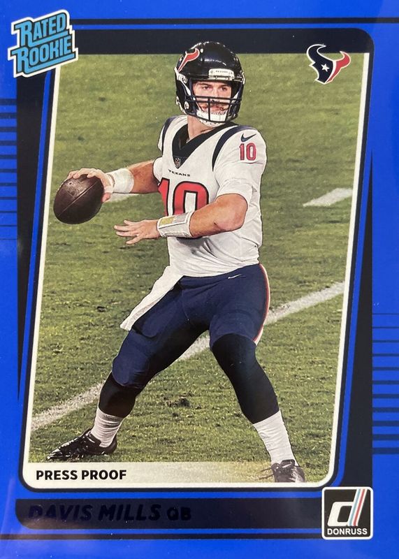 2021 Donruss Press Proof Blue Davis Mills RC Houston Texans BLUE PRESS PROOF