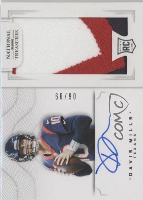This card is 1 of 44 Davis Mills' card variations in the 2021 National Treasures set being tracked by Sports Card Investor, including Rookie Patch Auto /99, Rookie Patch Auto - Green Jersey Number (/10), Rookie Patch Auto - Purple /49, Rookie Patch Auto - Holo Silver /25, and Rookie Patch Auto - Stars & Stripes Holo Silver /25.
