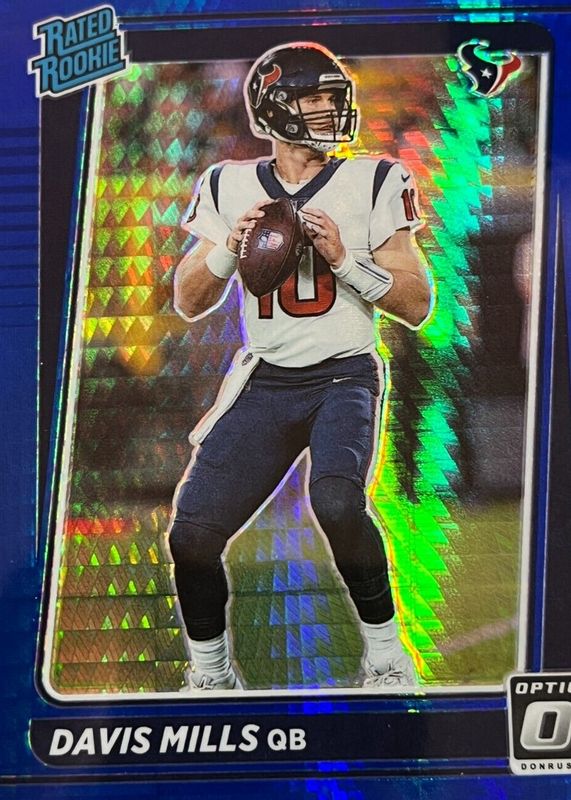 2021 Optic Davis Mills BLUE HYPER RATED ROOKIE 222 Panini Houston Texans Donruss