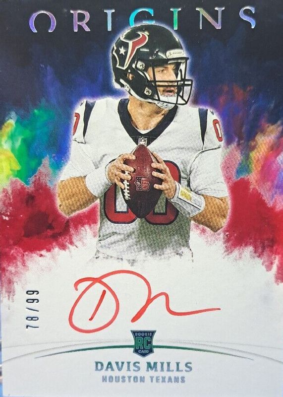 The Davis Mills 2021 Origins #RA-DM Rookie Autographs - Red /99 card in Raw condition has moved up $6.26 (+193%) in the last 30 days and was last sold for $9.51 .